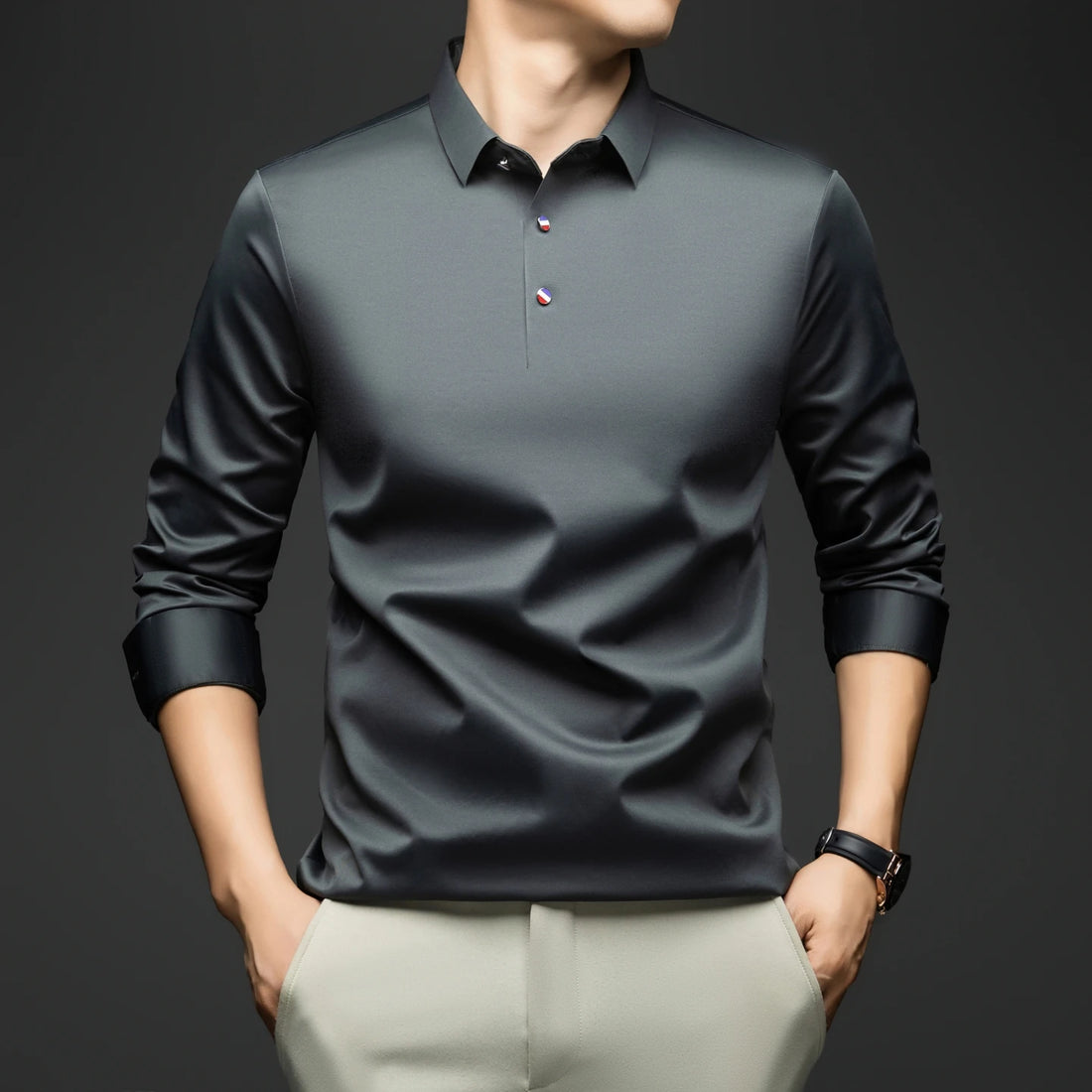 BROWON 2025 Spring Autumn Casual Work Tops Man Tshirt Long Sleeve Solid Color Soft Elegant Business Mulberry Silk T Shirt Man