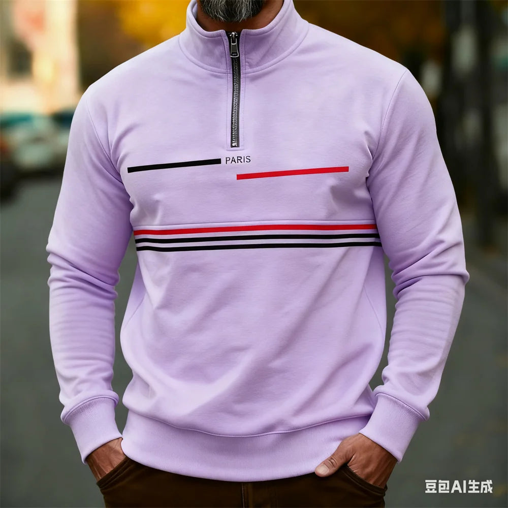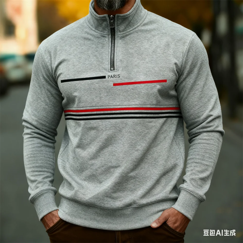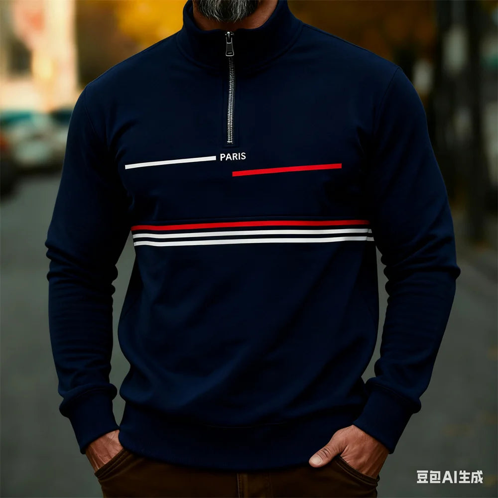 Autumn Winter Men's stand up collar pullover Paris pattern print hoodies for man leisure sports stripe zip-up hoodie Men clothin