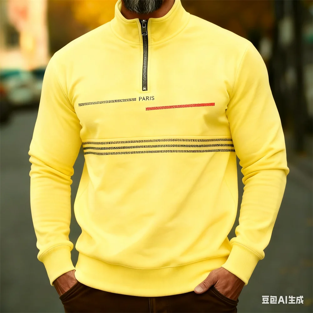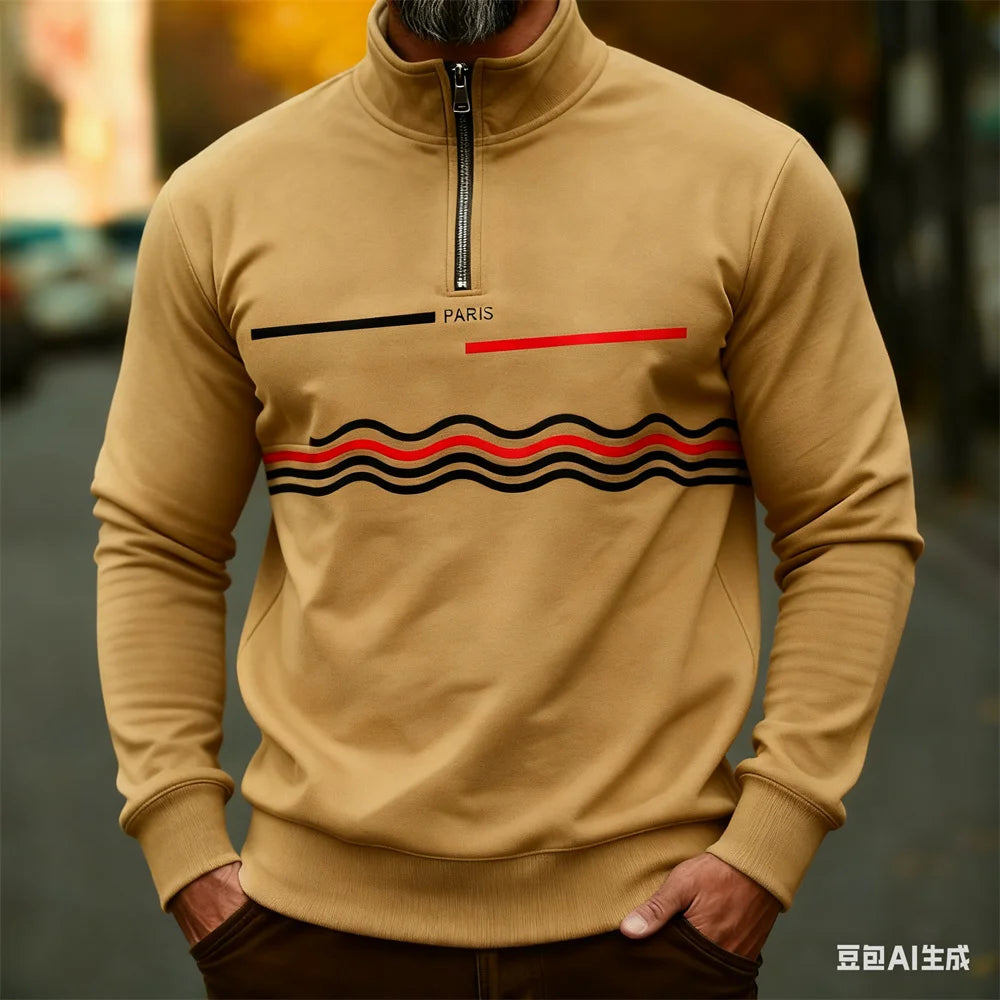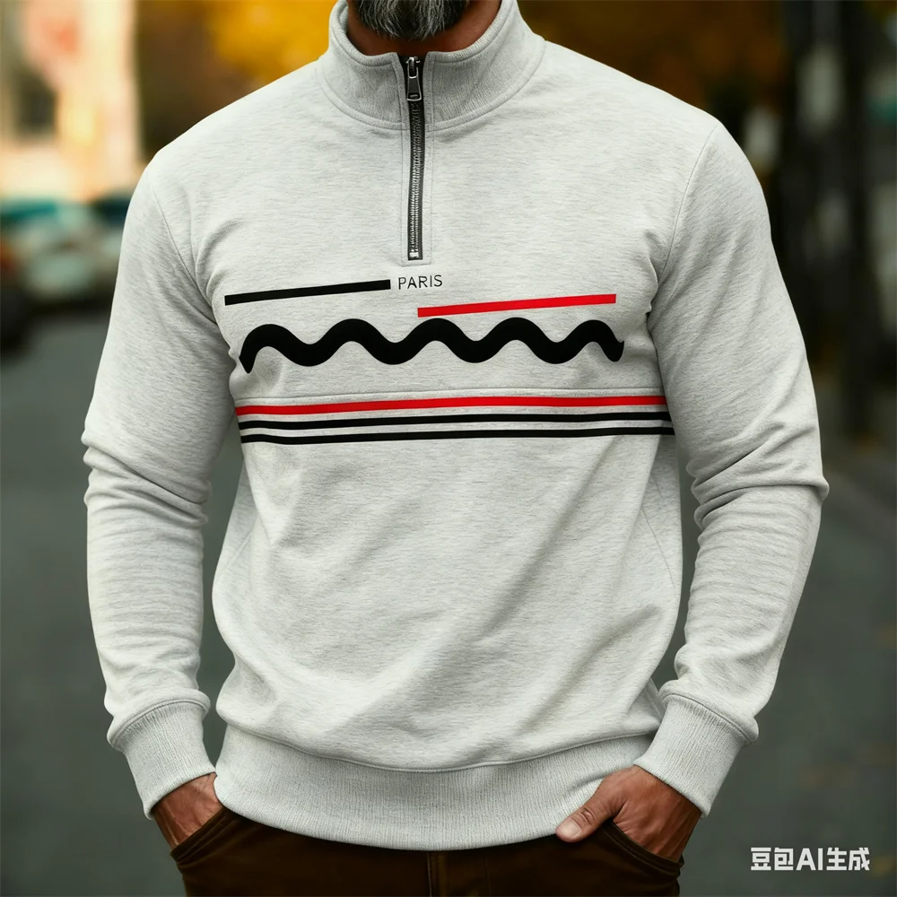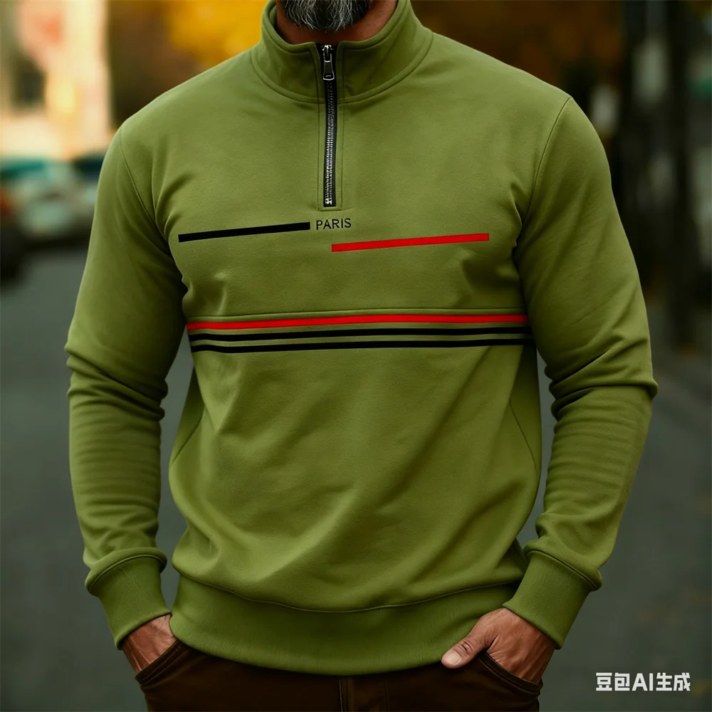 Autumn Winter Men's stand up collar pullover Paris pattern print hoodies for man leisure sports stripe zip-up hoodie Men clothin