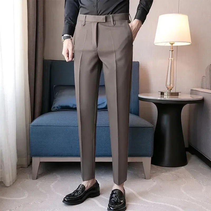 British Gentleman's Coffee Color Suit Pants Small Footed Business Draped Style Men's Trousers Elegant Casual Chic