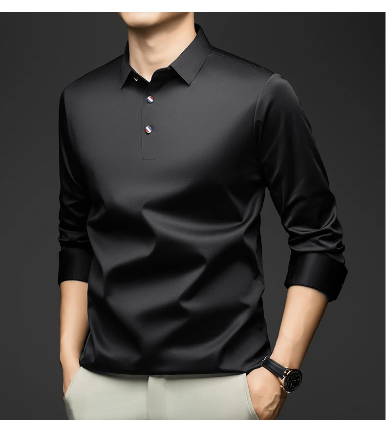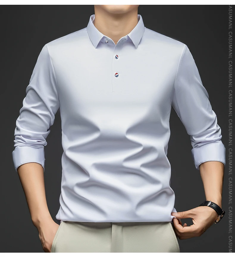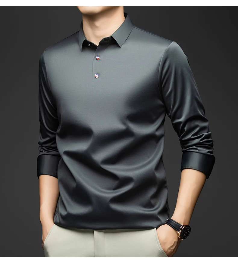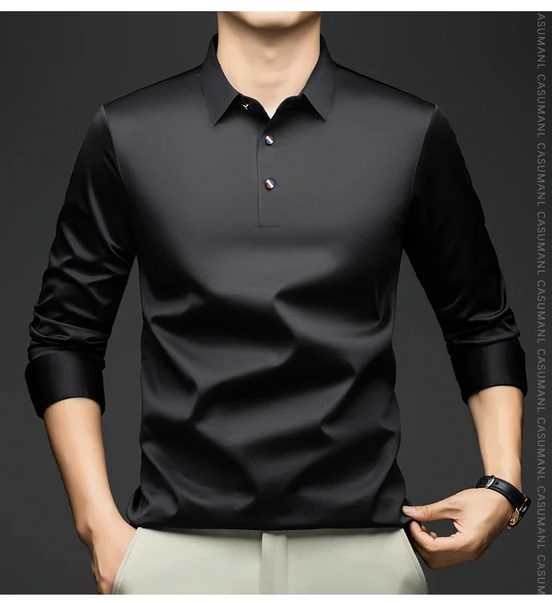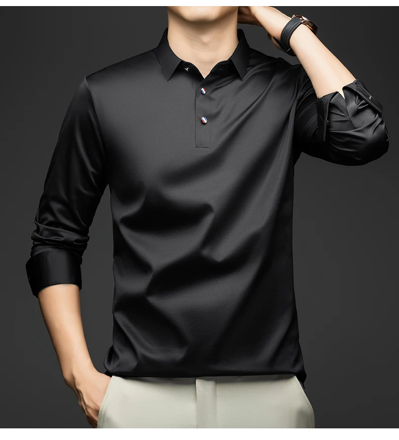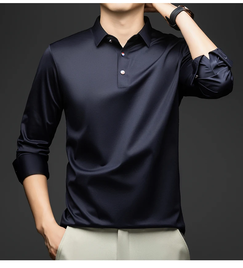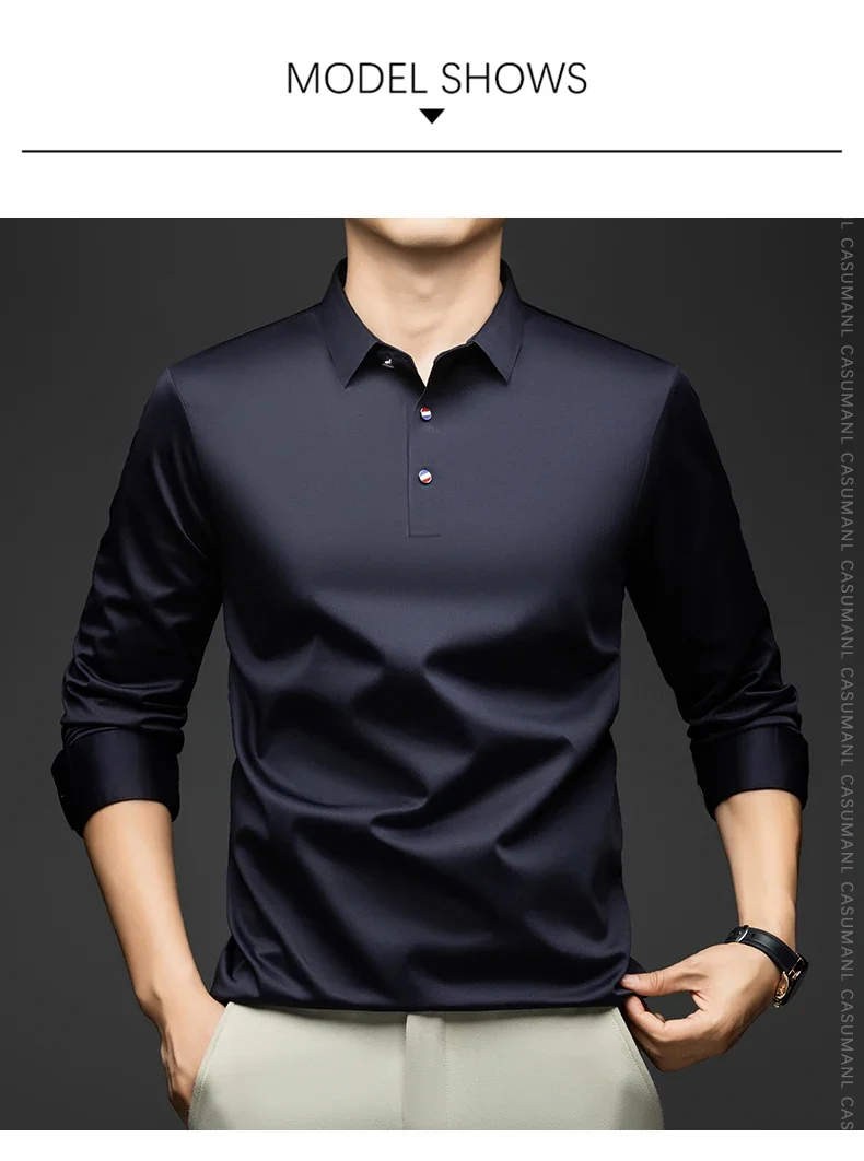 BROWON 2025 Spring Autumn Casual Work Tops Man Tshirt Long Sleeve Solid Color Soft Elegant Business Mulberry Silk T Shirt Man