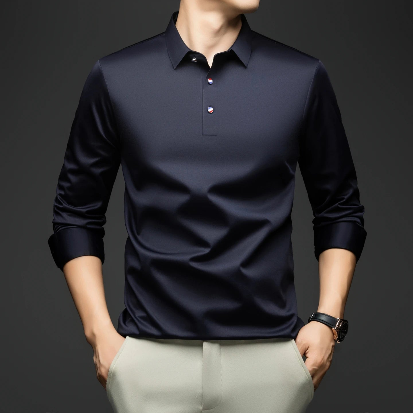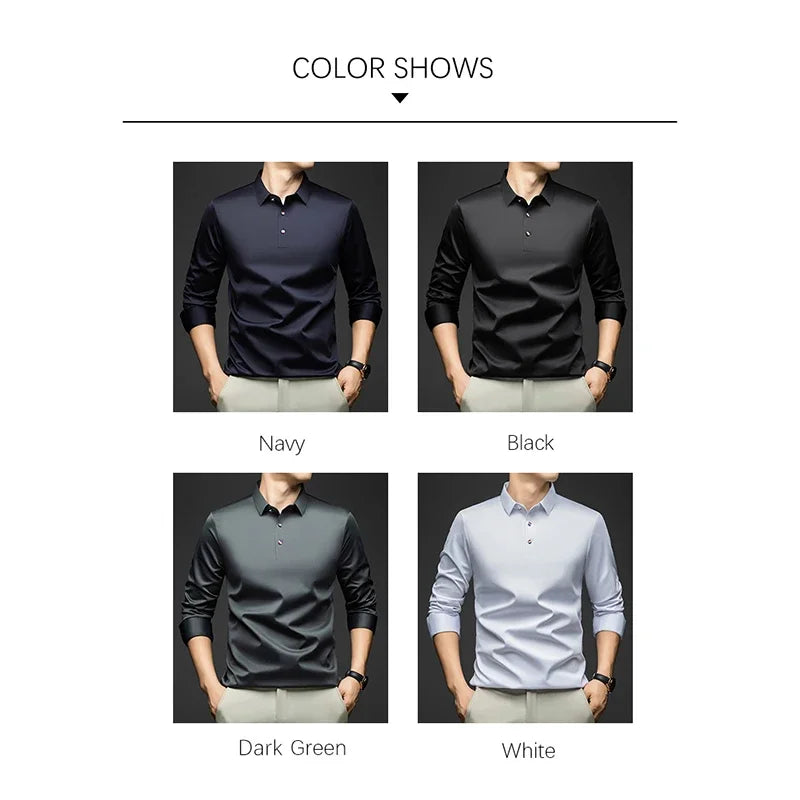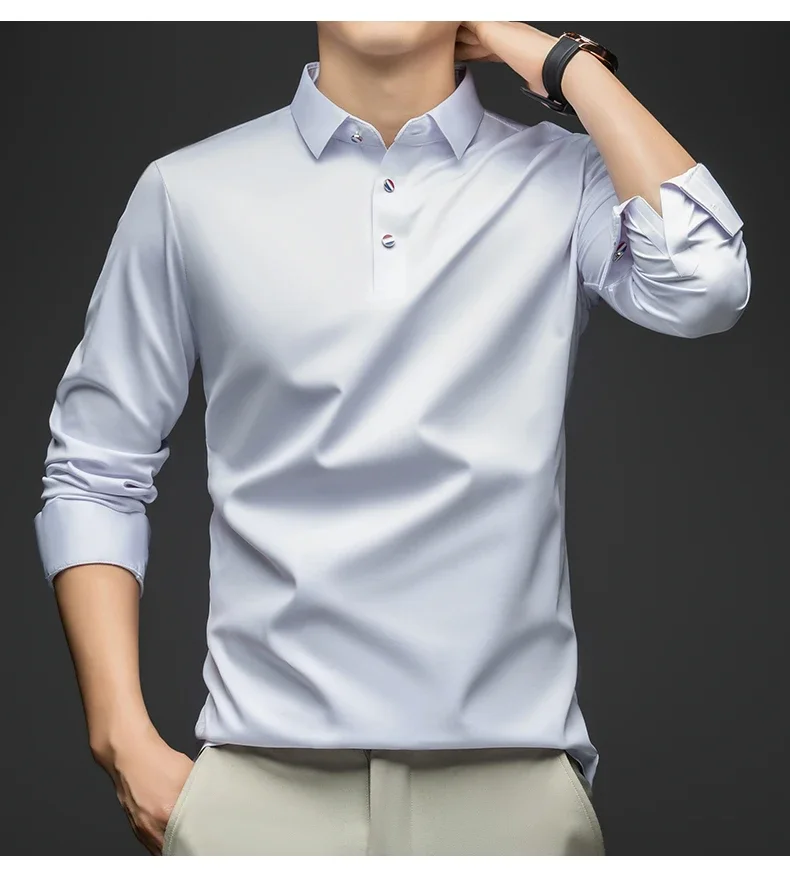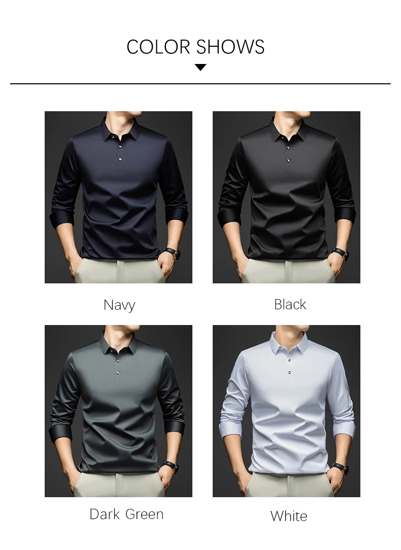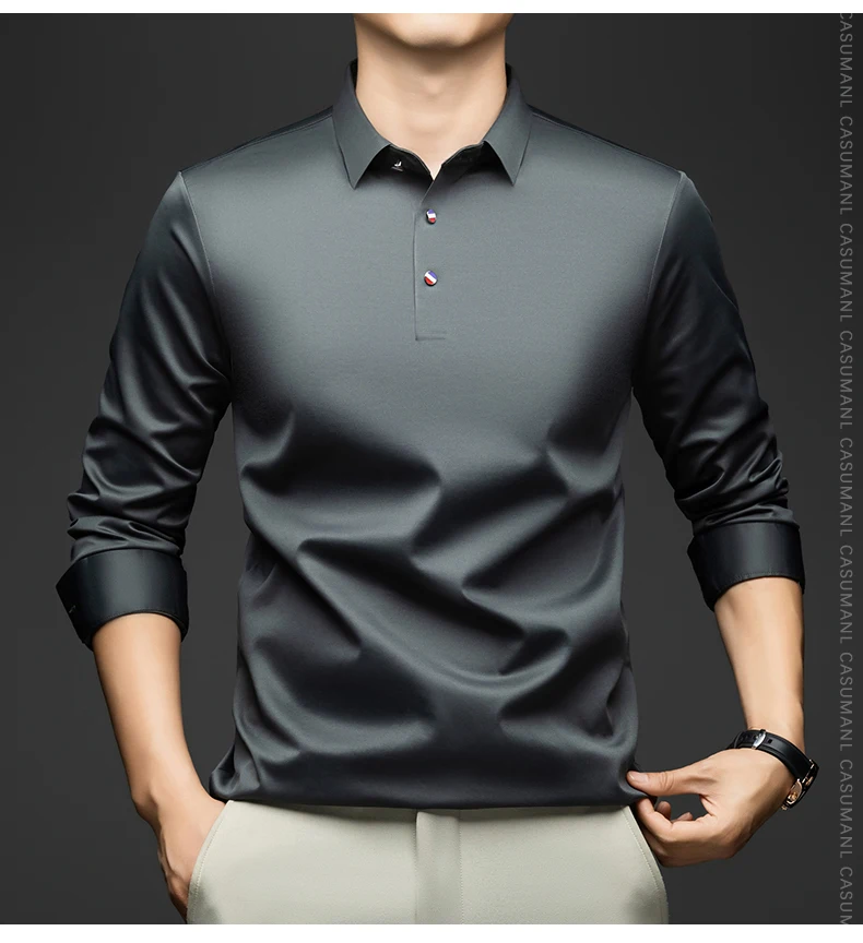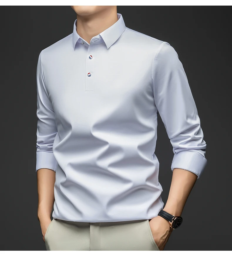 BROWON 2025 Spring Autumn Casual Work Tops Man Tshirt Long Sleeve Solid Color Soft Elegant Business Mulberry Silk T Shirt Man