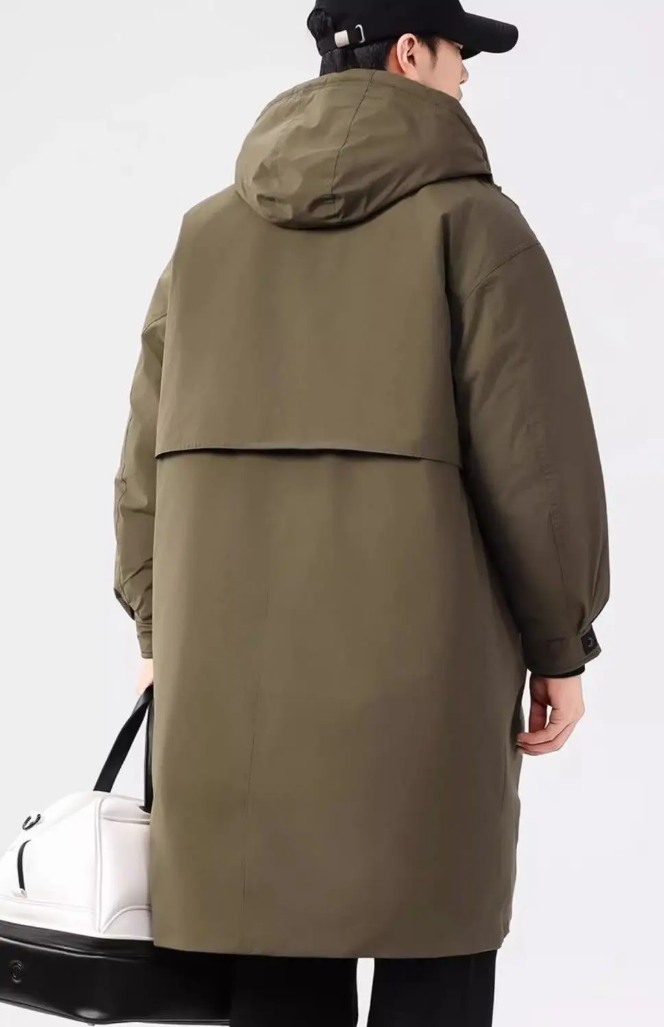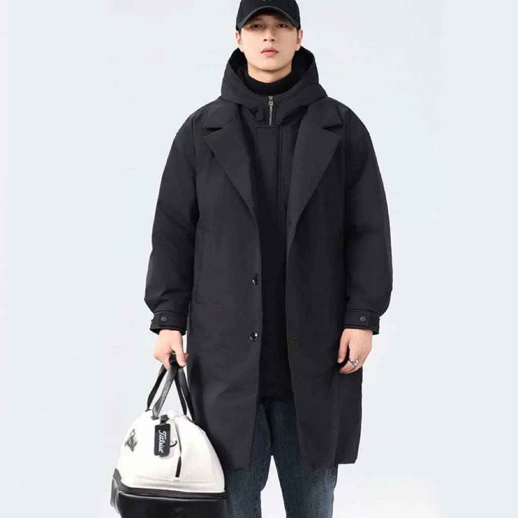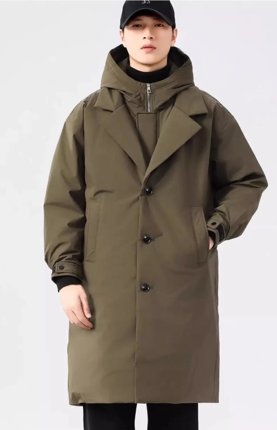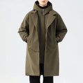 Man Windbreaker Winter Thicken Windproof Warm Hooded Men Down Coat Vintage Mid Length Long Sleeve Male Fake Two-piece Outerwear