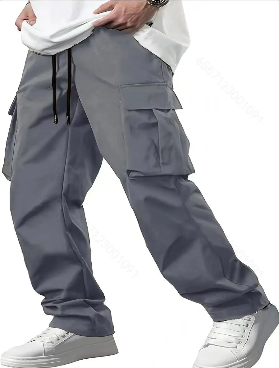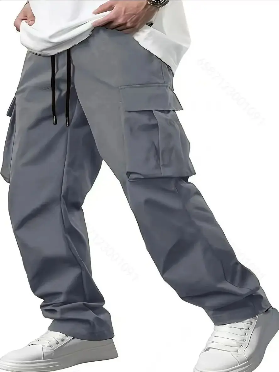 Men's Solid Color Drawstring Waist Multi Pocketed Cargo Long Pants Men Khaki Men Cargo Pants With Drawstring Jogger Cargo Pants