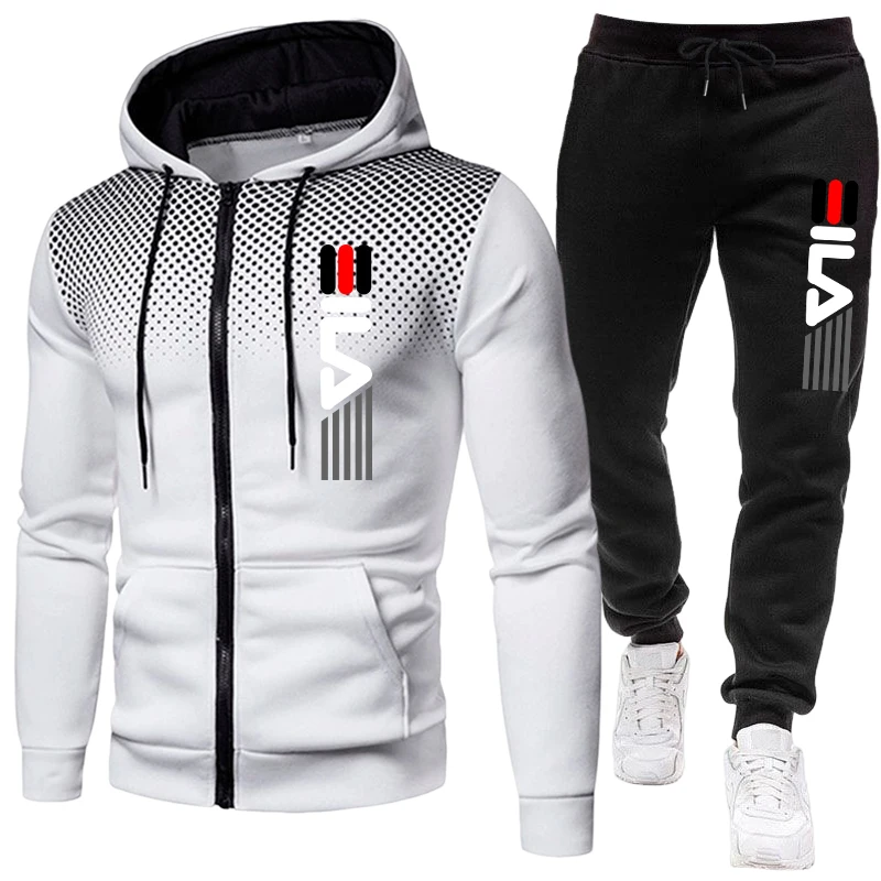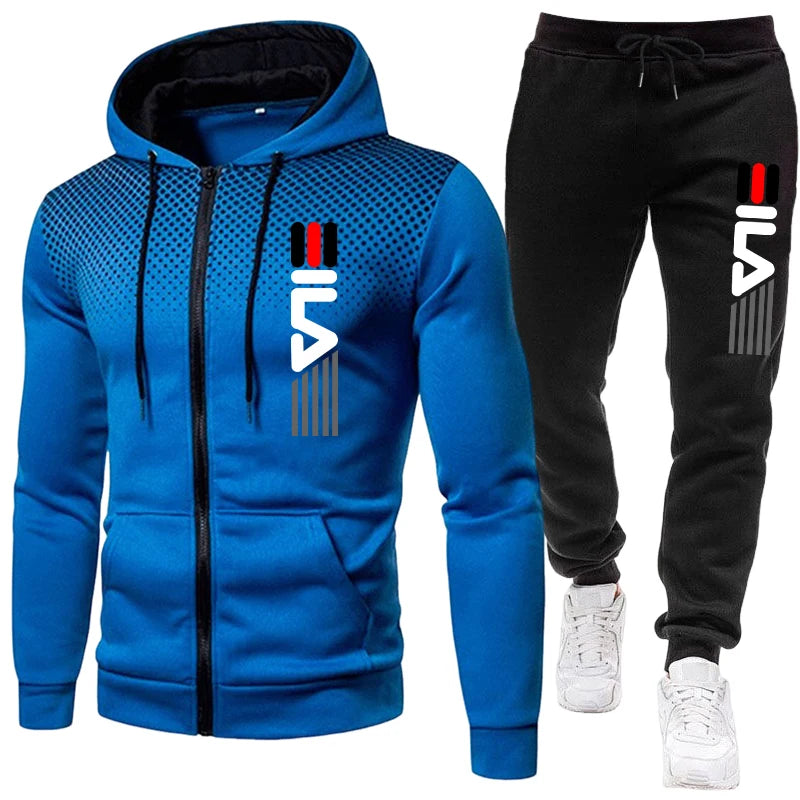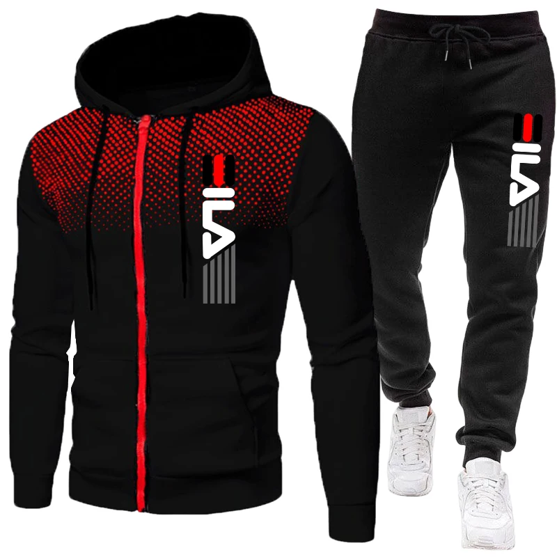 Mens Tracksuit Set Zipper Hoodie with Joggers Athletic Sportswear Gym Workout Outfit Urban Casual Autumn Training Sports Suit