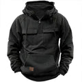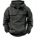 New autumn-winter men's hooded solid-color casual hoodie - fashionable young man's multi-pocket patch hoodie pullover shirt