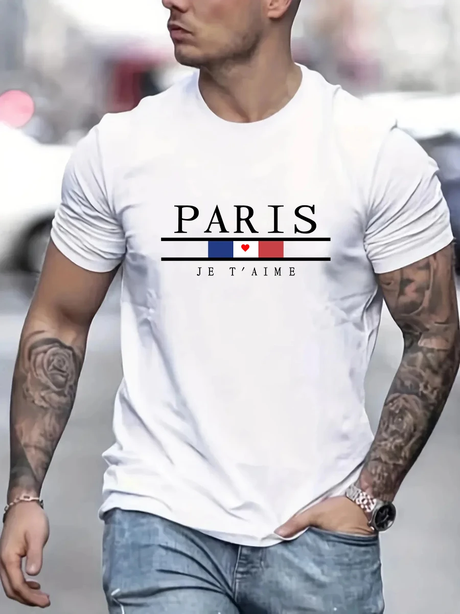 Paris Shirts Men's T-Shirts Print Mens Clothes Short Sleeve T Shirt Crew Neck Oversized T Shirt Fashion Men's Clothing