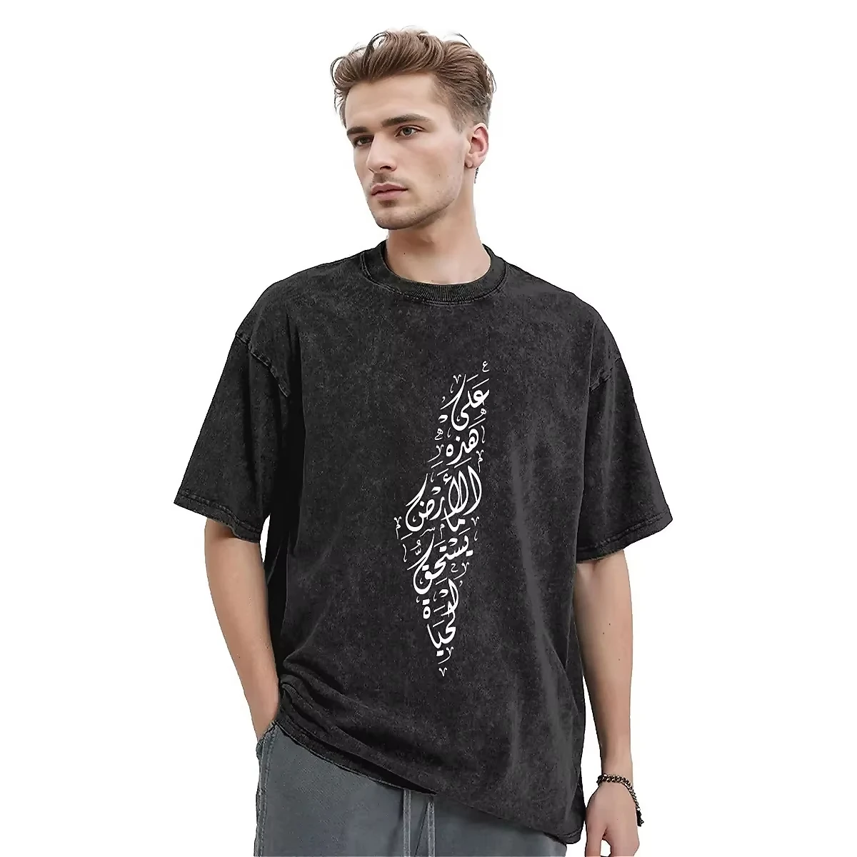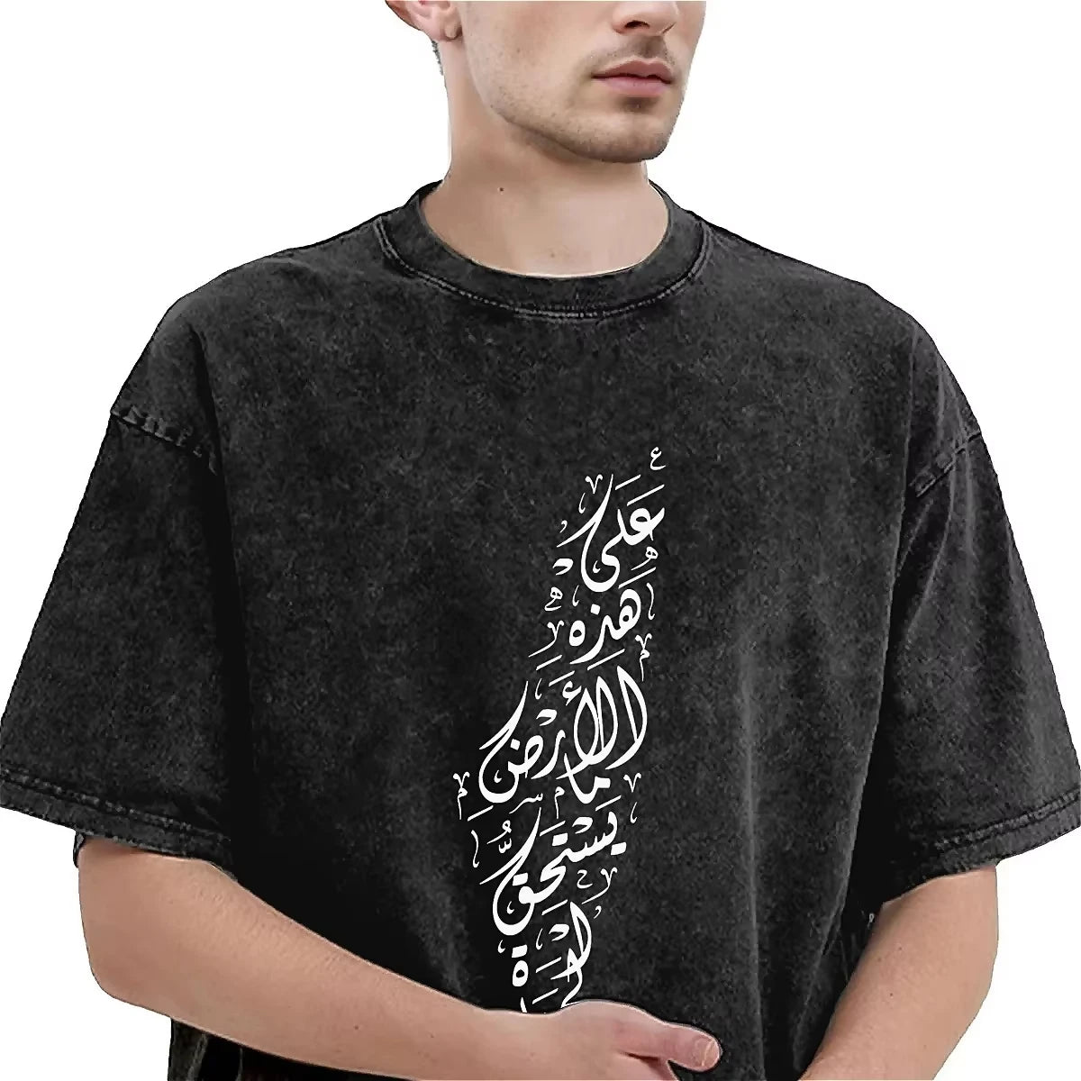 Vintage Washed T-Shirt Arabic Calligraphy Map of Palestines T Shirts Palestinians Flag Tshirt for Men Women Summer Tees
