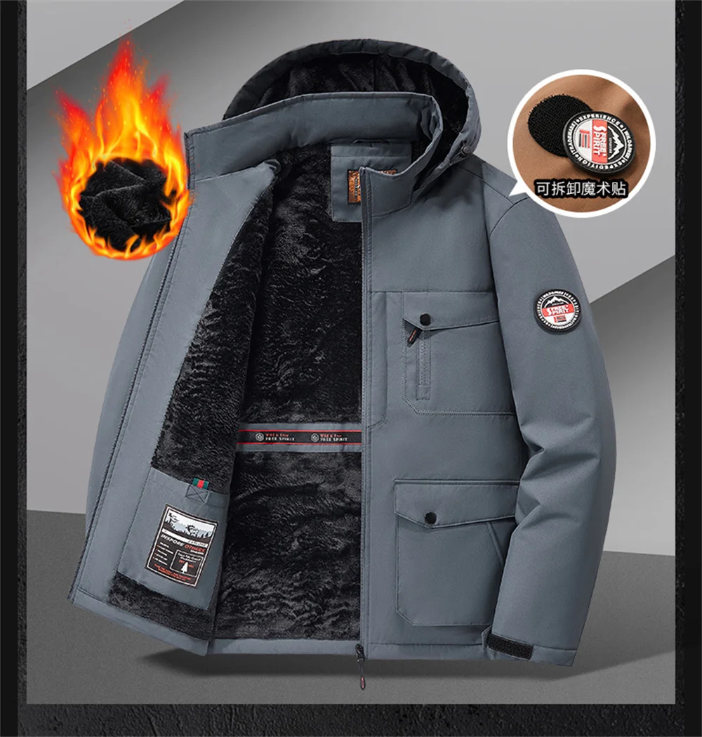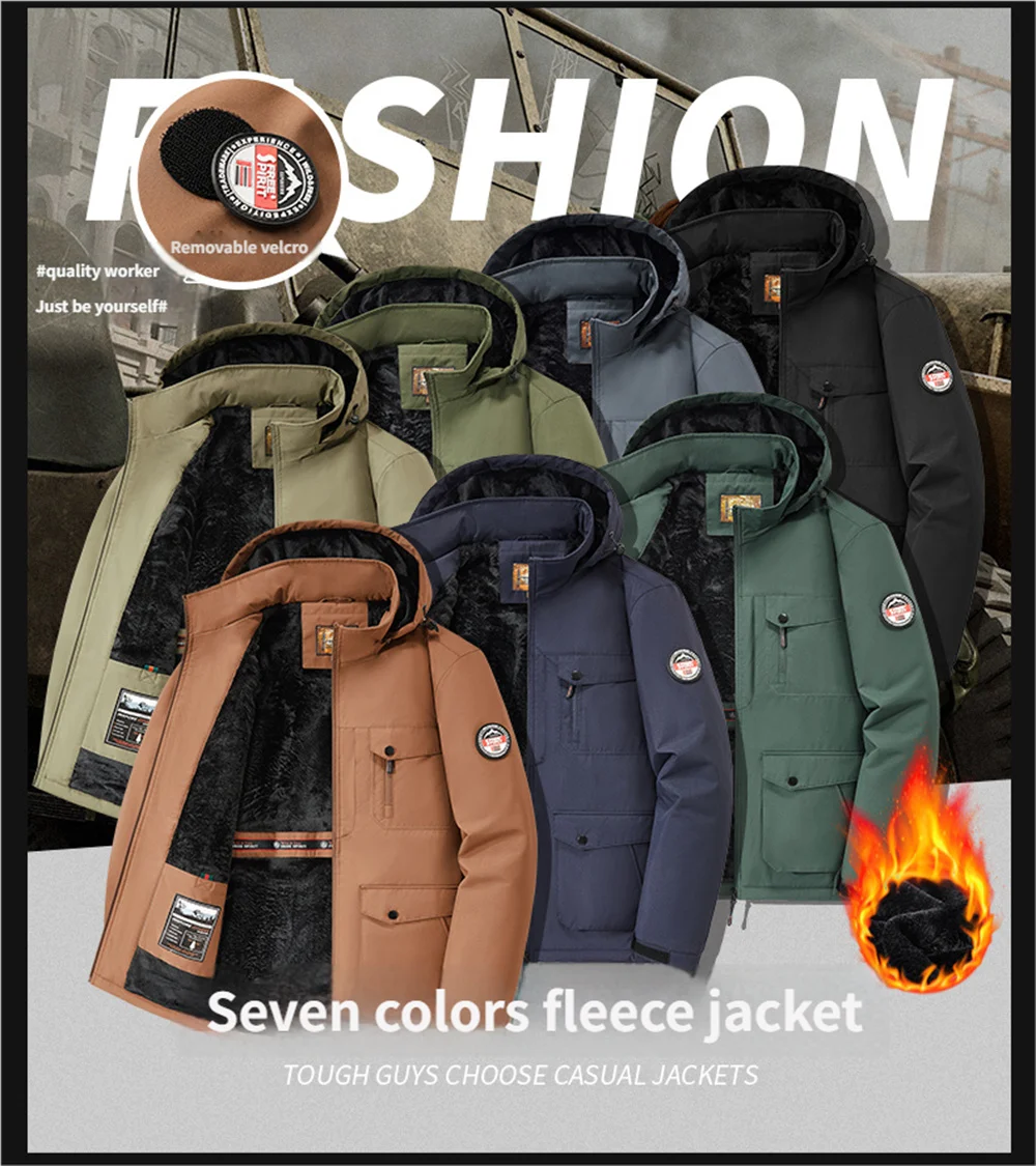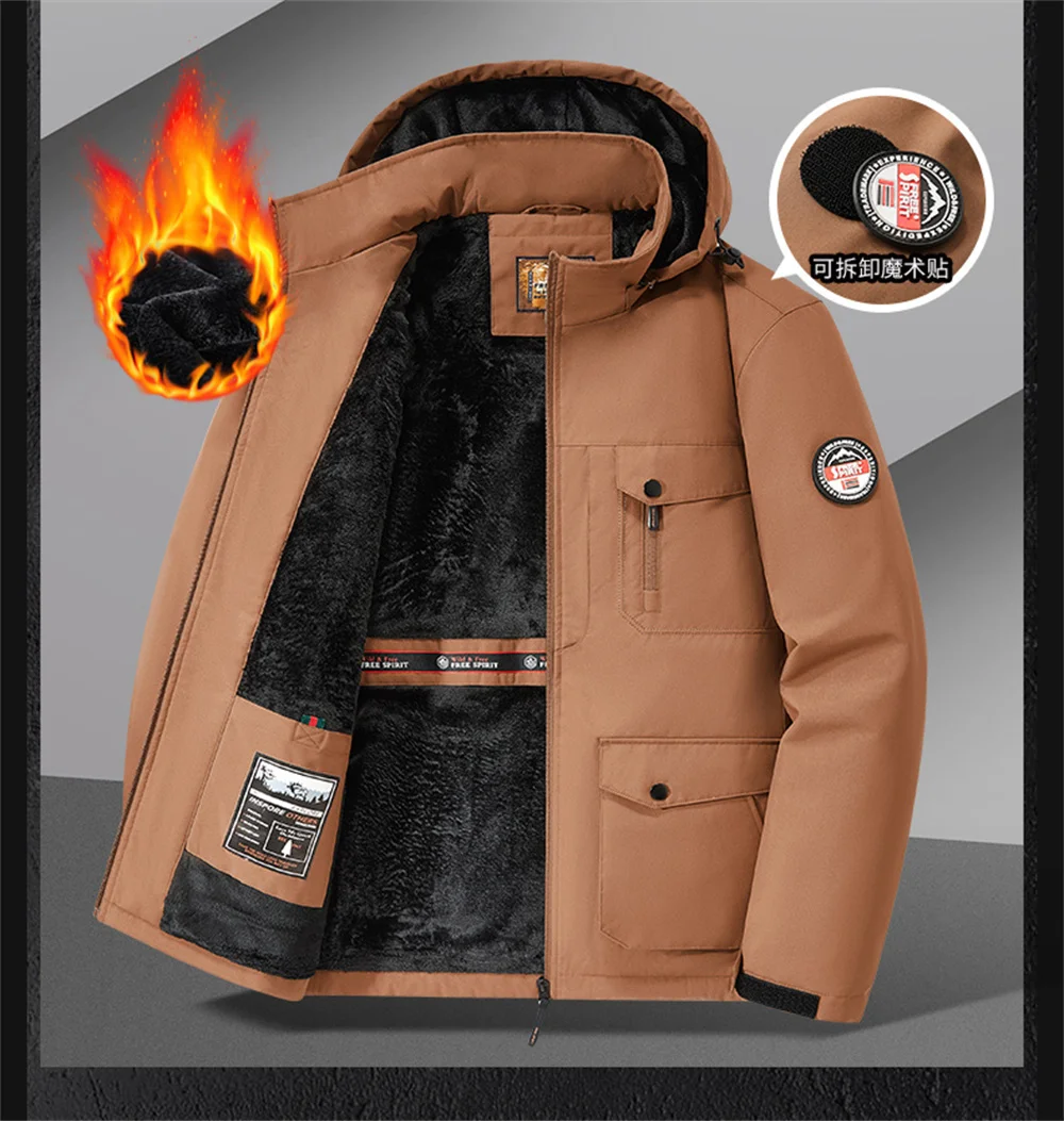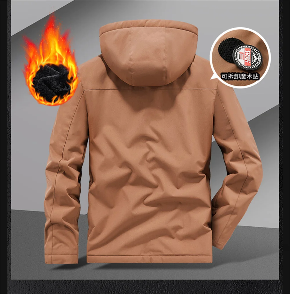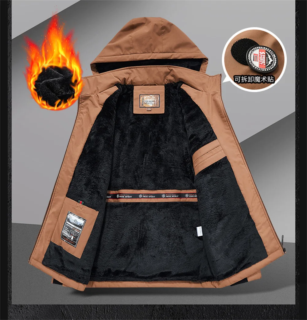 Winter New Arrival Men's Detachable Hood Fleece-Lined Jacket Casual Fashion Windproof Warm Multi-Pocket Jacket Workwear Jacket