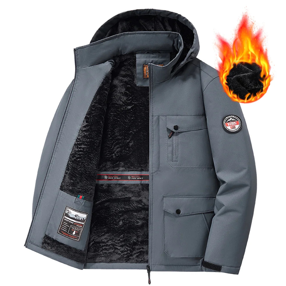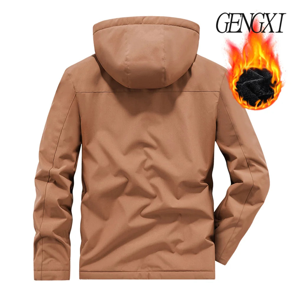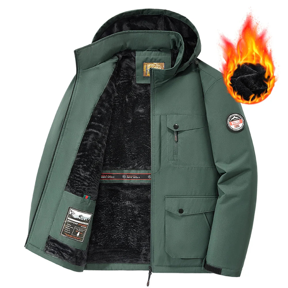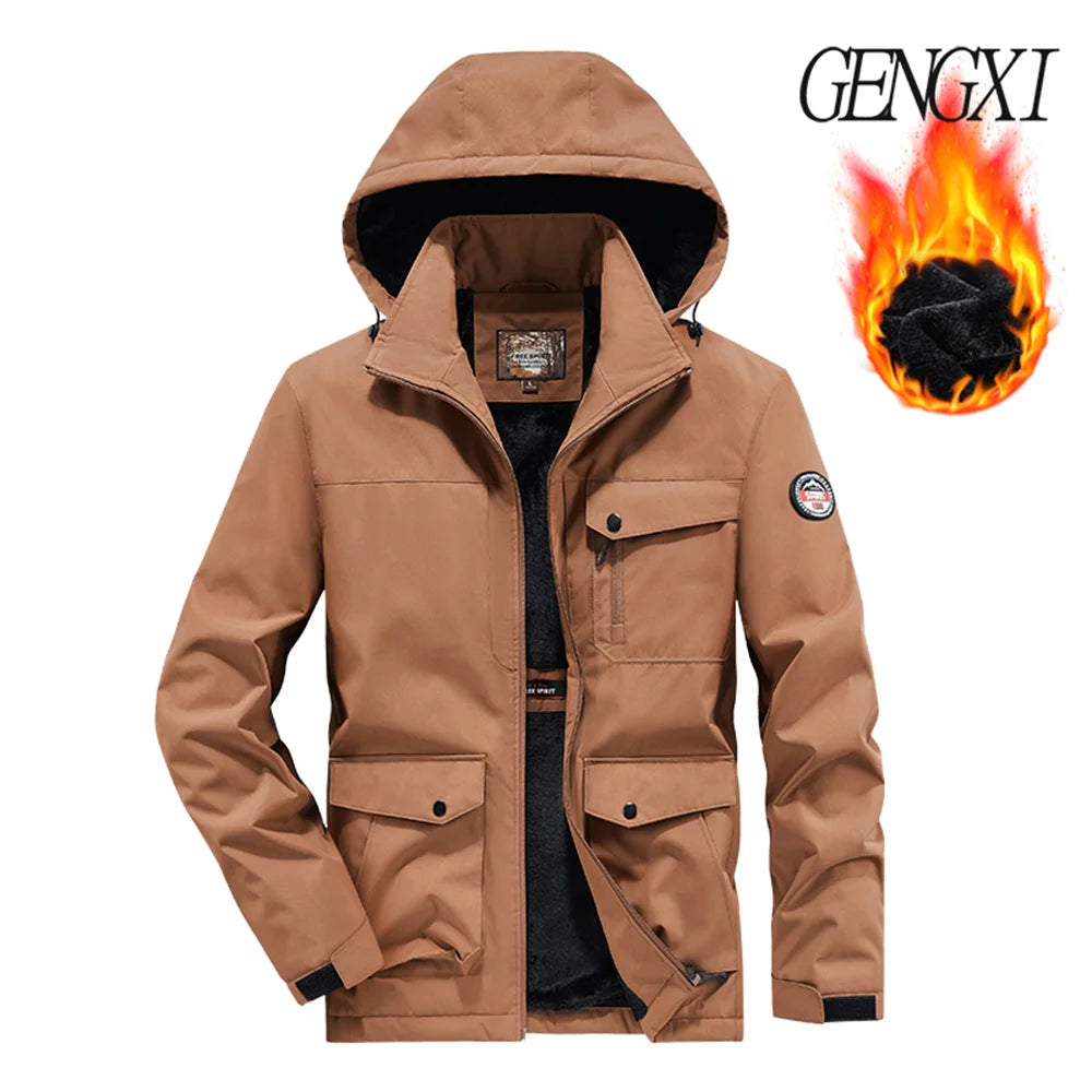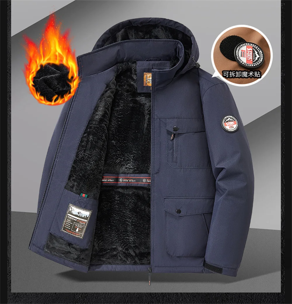 Winter New Arrival Men's Detachable Hood Fleece-Lined Jacket Casual Fashion Windproof Warm Multi-Pocket Jacket Workwear Jacket