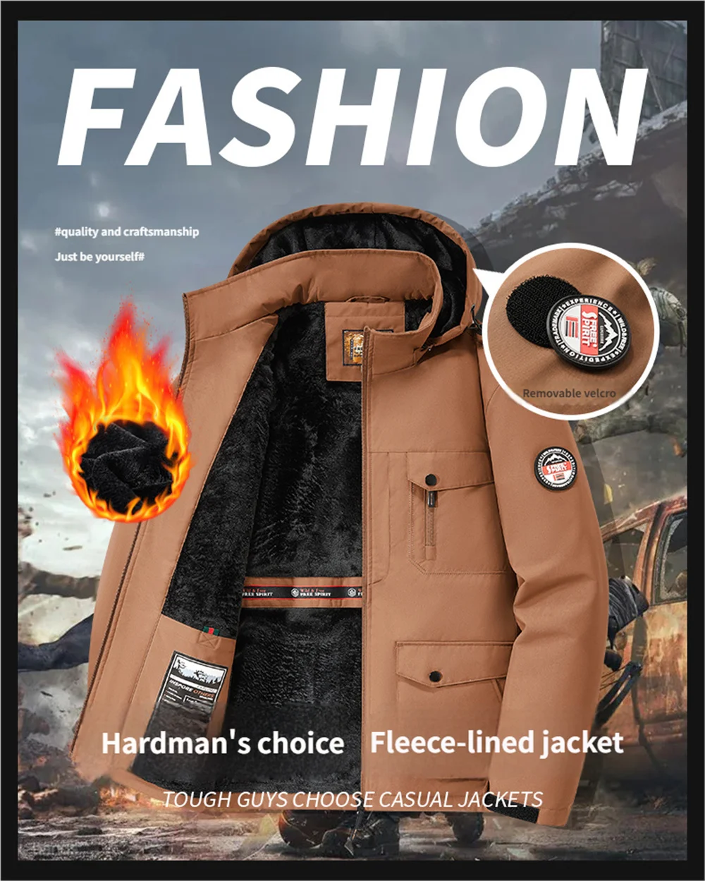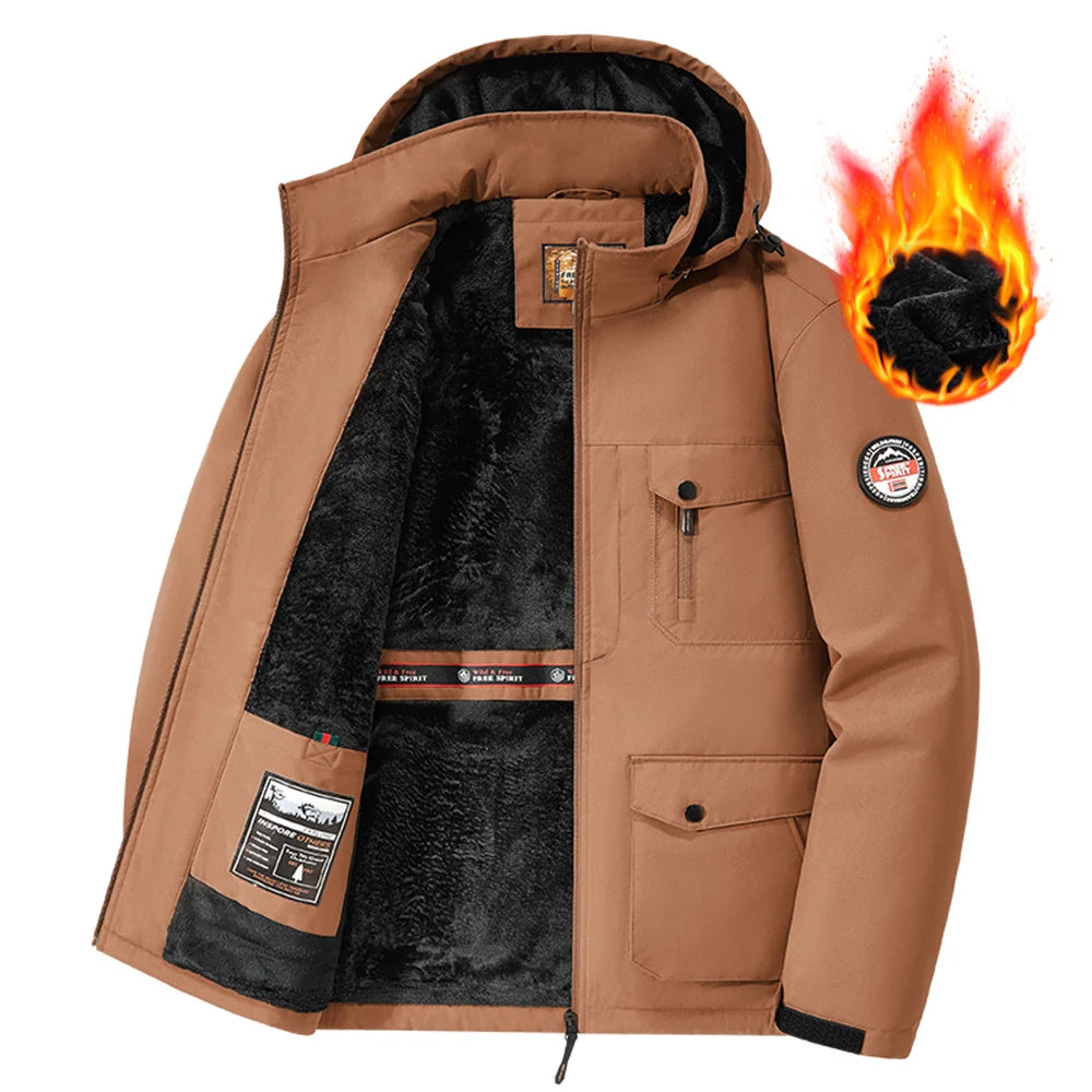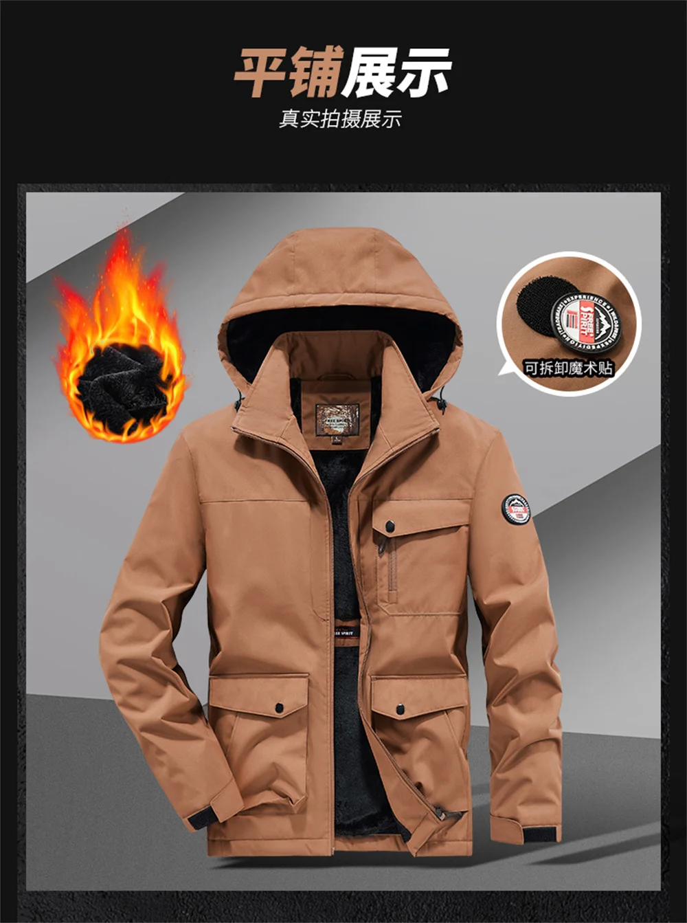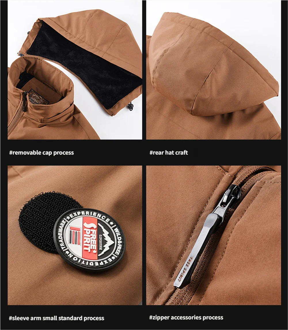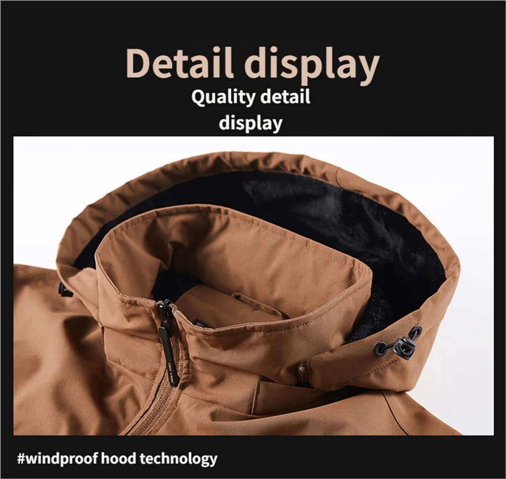 Winter New Arrival Men's Detachable Hood Fleece-Lined Jacket Casual Fashion Windproof Warm Multi-Pocket Jacket Workwear Jacket
