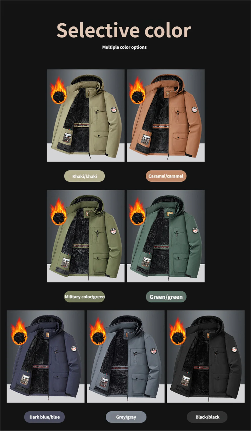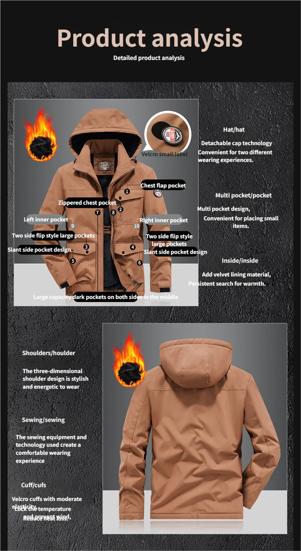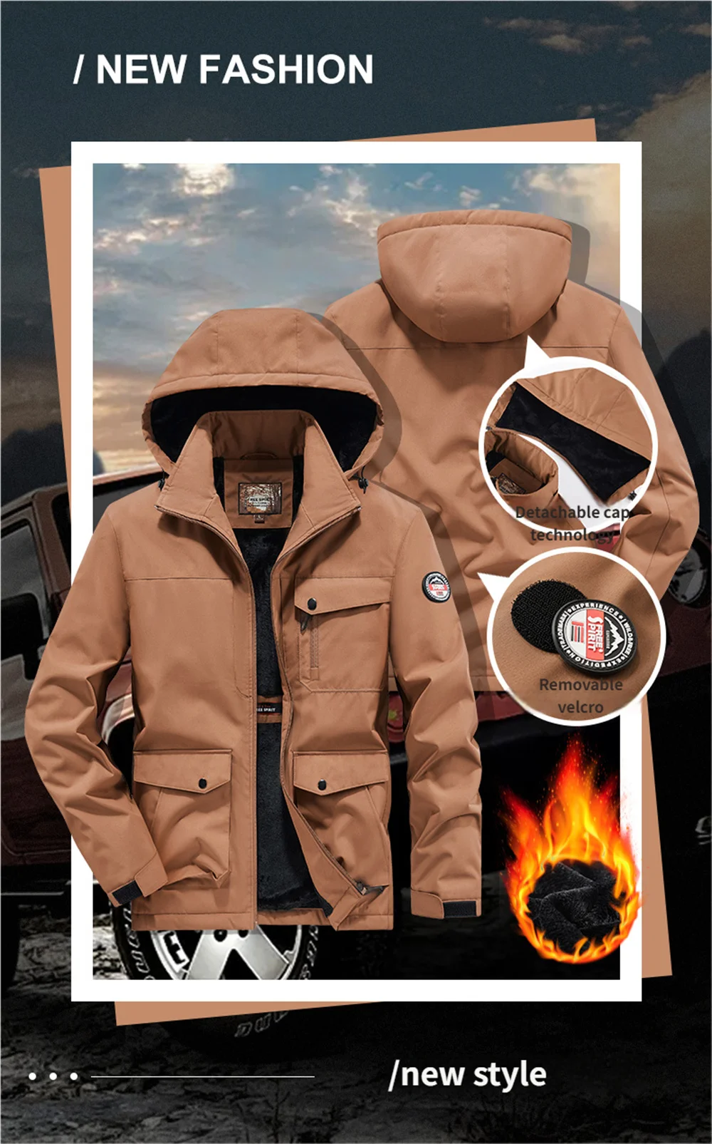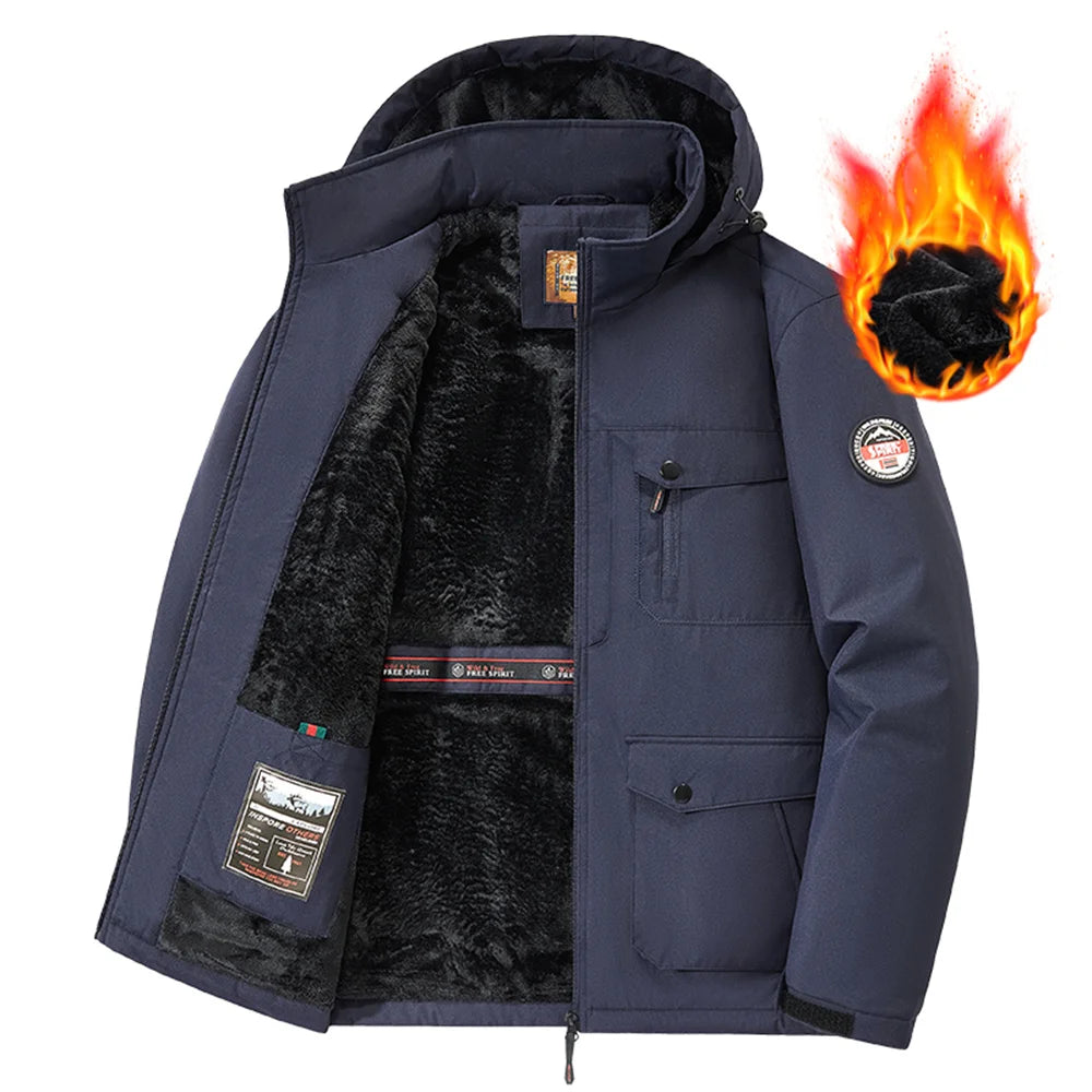 Winter New Arrival Men's Detachable Hood Fleece-Lined Jacket Casual Fashion Windproof Warm Multi-Pocket Jacket Workwear Jacket